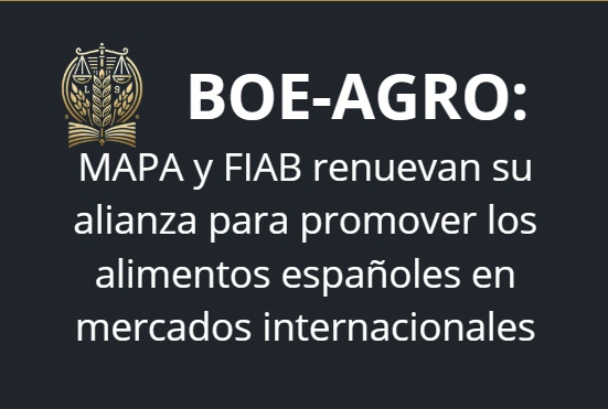 El Ministerio de Agricultura, Pesca y Alimentación (MAPA) y la Federación Española de Industrias de Alimentación y Bebidas (FIAB) han firmado un nuevo convenio de colaboración con el objetivo de impulsar la proyección exterior del sector agroalimentario español mediante la participación conjunta en ferias y certámenes internacionales durante los años 2025 y 2026.